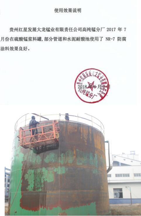 NR-7GJ 可為化工廠各類如酸、堿、鹽及有機(jī)物質(zhì)罐體內(nèi)外壁防腐,耐濃硫酸、鹽城、氫氟酸,氯離子等腐蝕,工序簡單,易于涂裝,代替三油五布等工藝。涂層干后無毒無味,為業(yè)務(wù)和運(yùn)營商提供桌越的腐蝕保護(hù)和長維修間隔,全年均可施工,溫度可低至-25℃,適合耐高溫重防腐環(huán)境區(qū)域。