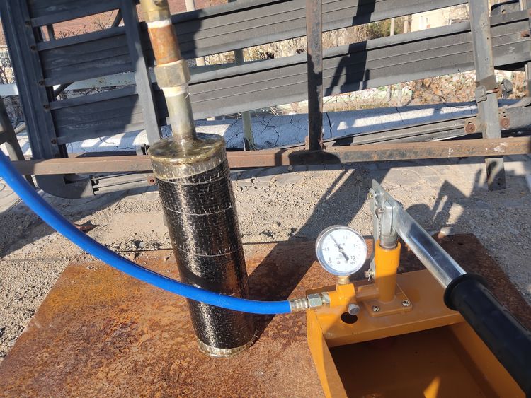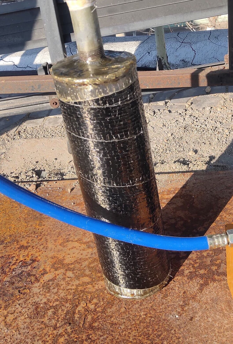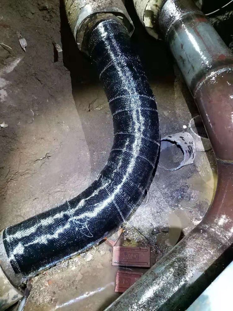 美國天然氣研究協(xié)會(huì)(Gas Research Institute)的研究表明,纖維復(fù)合材料對(duì)壓力管道的修復(fù)效果取決于復(fù)合材料的抗拉強(qiáng)度和彈性模量。碳纖維材料具有優(yōu)異的化學(xué)性能,其抗拉強(qiáng)度超過3500MPa,遠(yuǎn)遠(yuǎn)大于鋼材的抗拉強(qiáng)度。碳纖維復(fù)合材料的彈性模量與鋼材的彈性模量(207×103MPa)幾乎完全相同,補(bǔ)強(qiáng)層與鋼管具有非常好的變形協(xié)同性。補(bǔ)強(qiáng)層能夠替代管道缺陷承擔(dān)的管道內(nèi)壓